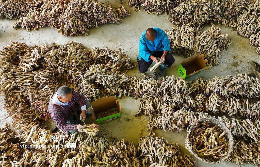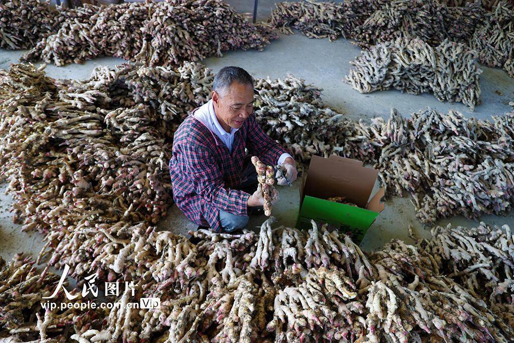今年,重庆市黔江区太极镇金团村在重庆市科技局帮扶集团支持下,引进重庆文理学院培育的“富锶生姜渝姜2号”进行规模化种植,并建成富锶生姜示范基地。重庆文理学院专家为村民提供从土壤改良、种植技术到病虫害绿色防控等全流程专业技术指导,为生姜产业发展、农民增收和乡村振兴注入科技动力。杨敏摄(人民图片网)